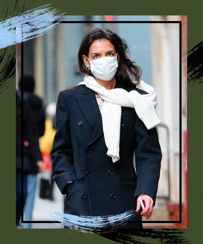 Though slightly preppier than what we’ve grown accustomed to seeing Holmes in lately, given that the back-to-school look is on the rise again (think: Bella Hadid’s recent varsity jacket and the return of Gossip Girl), it’s really no surprise that the actress would borrow a signature styling trick from her fictional hometown. Now, we’ll be recreating the look, too.